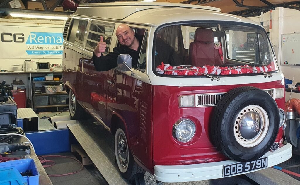 This 1974 VW camper came in for dyno test after completing a engine conversion to a VW 1.9tdi engine.