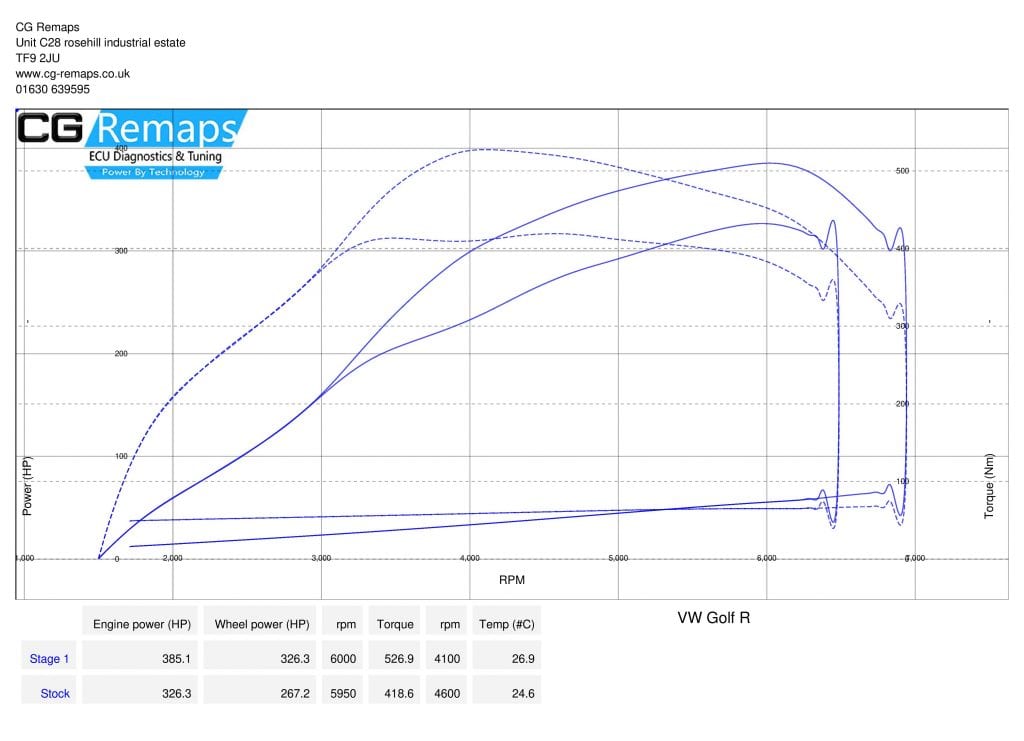 VW GOLF R STAGE 1 DYNO RESULTS.
